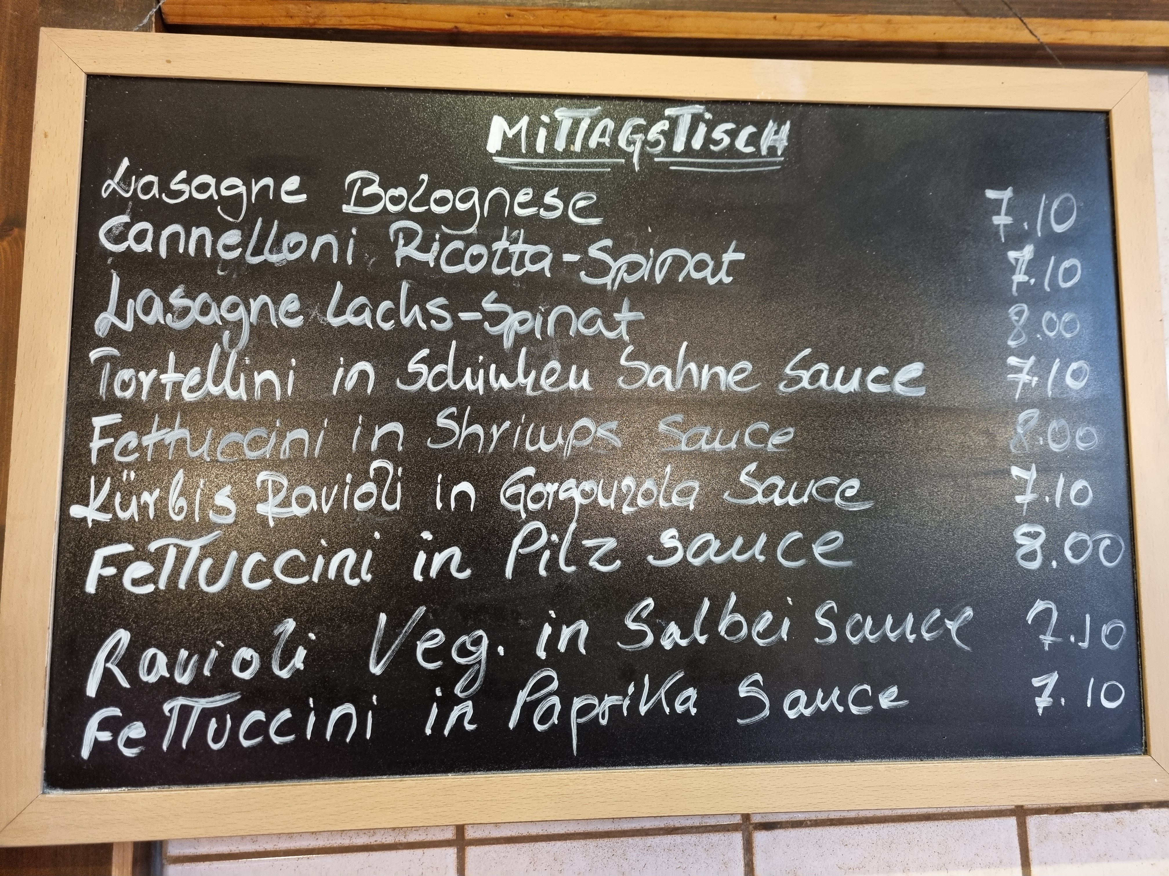 4 March, 2021 10:45 4. März 2021AllgemeinAdmin 04.03.21.MittagstischKürbis Ravioli in Gorgonzola sauce Ravioli ricotta Spinat in Tomate sauce.